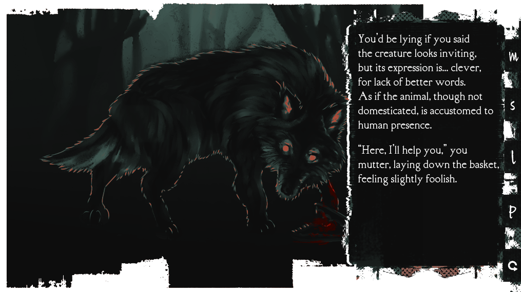 your writing is absolutely amazing, love the somber feeling and the aesthetic of the game!!! also it's great how you can keep the legibility intact even with a more refined speech style :D